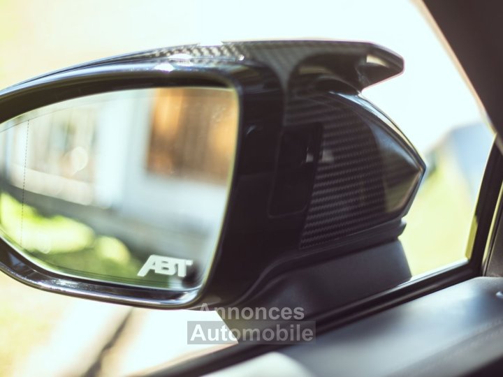 Turbocompresseur ABT, échangeur d'air ABT et garantie constructeur de 2 ans inclus. Vitesse maximale de 320 km/h sélectionnable en option.